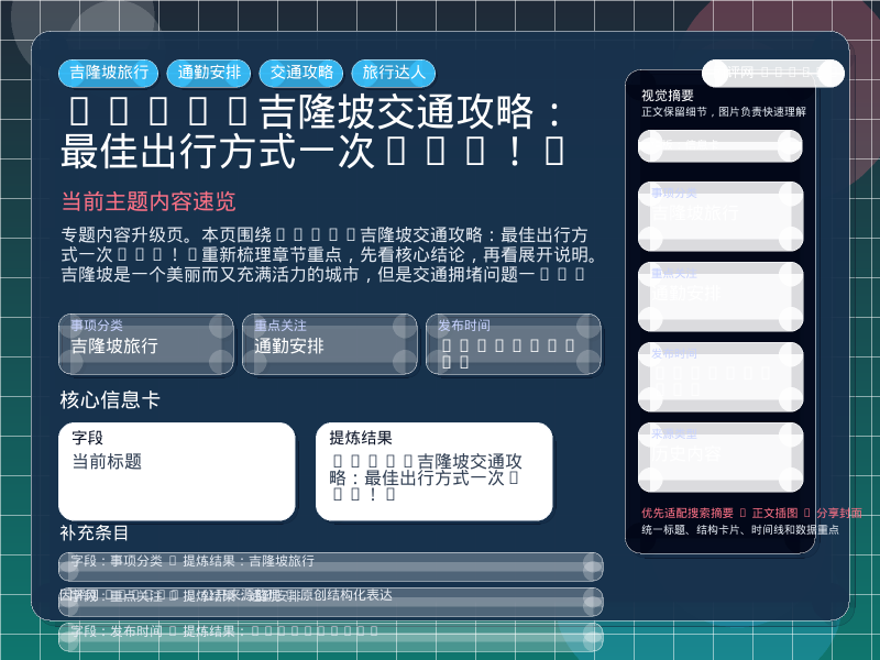 这篇内容围绕“[🚕吉隆坡交通攻略:最佳出行方式一次get!]”重新整理为结构化阅读页,优先提炼核心结论、章节重点和继续阅读方向。