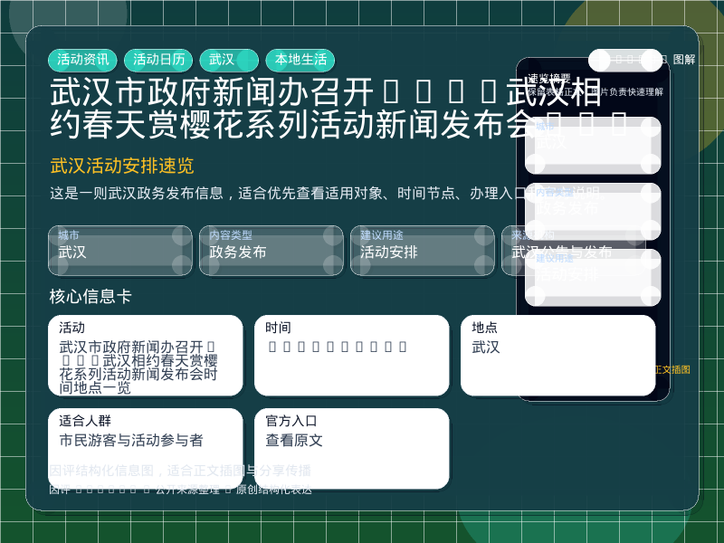 核心结论武汉政务发布整理,围绕“视频 | 武汉市政府新闻办召开2026武汉“相约春天赏樱花”系列活动新闻发布会”提炼为可检索、可阅读的原创结构化内容,优先展示时间、对象、入口和行动建议,来源:武汉公告与发布。