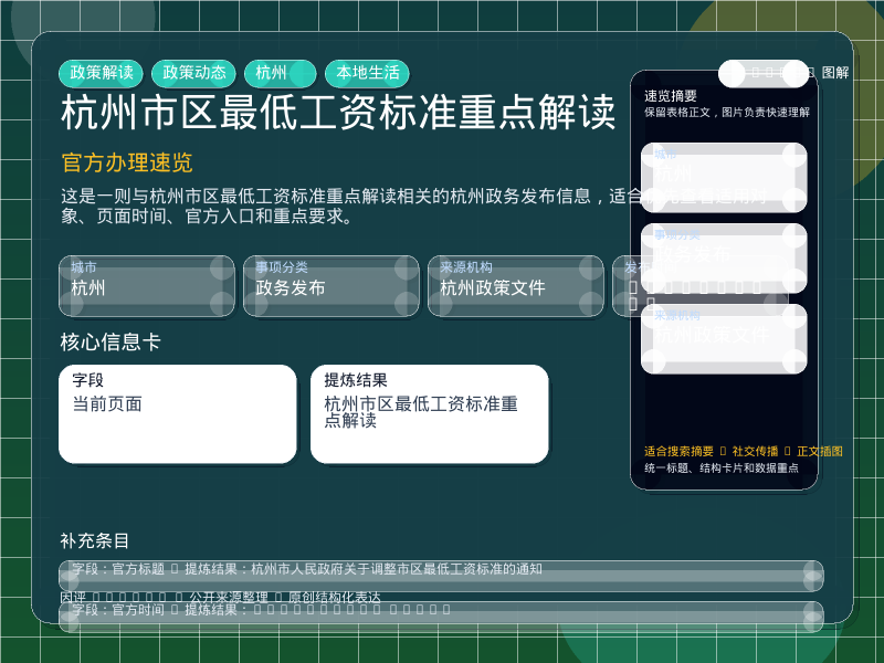杭州政务发布整理,围绕“杭州市人民政府关于调整市区最低工资标准的通知”提炼为可检索、可阅读的原创结构化内容,优先展示时间、对象、入口和行动建议,来源:杭州政策文件。
