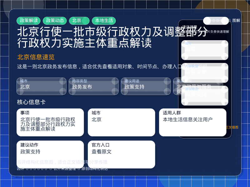 核心结论北京政务发布整理,围绕“北京城市副中心管理委员会关于行使一批市级行政权力及调整部分行政权力实施主体的公告”提炼为可检索、可阅读的原创结构化内容,优先展示时间、对象、入口和行动建议,来源:北京政策与服务提醒。