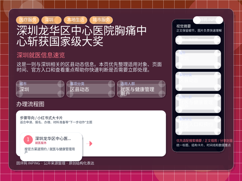 深圳区县动态整理,围绕“龙华区中心医院胸痛中心斩获国家级大奖”提炼为可检索、可阅读的原创结构化内容,优先展示时间、对象、入口和行动建议,来源:深圳各区动态。