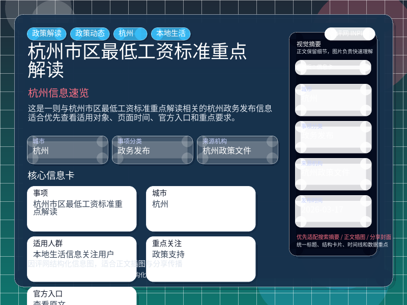 这是一则与“杭州市区最低工资标准重点解读”相关的杭州政务发布信息,适合优先查看适用对象、页面时间、官方入口和重点要求。