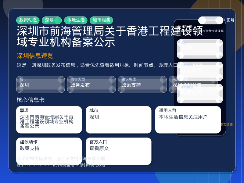 深圳本地生活线索:深圳市前海管理局关于香港工程建设领域专业机构备案公示。该条目仅导入公开页面元数据,待人工审核后再生成原创内容。
