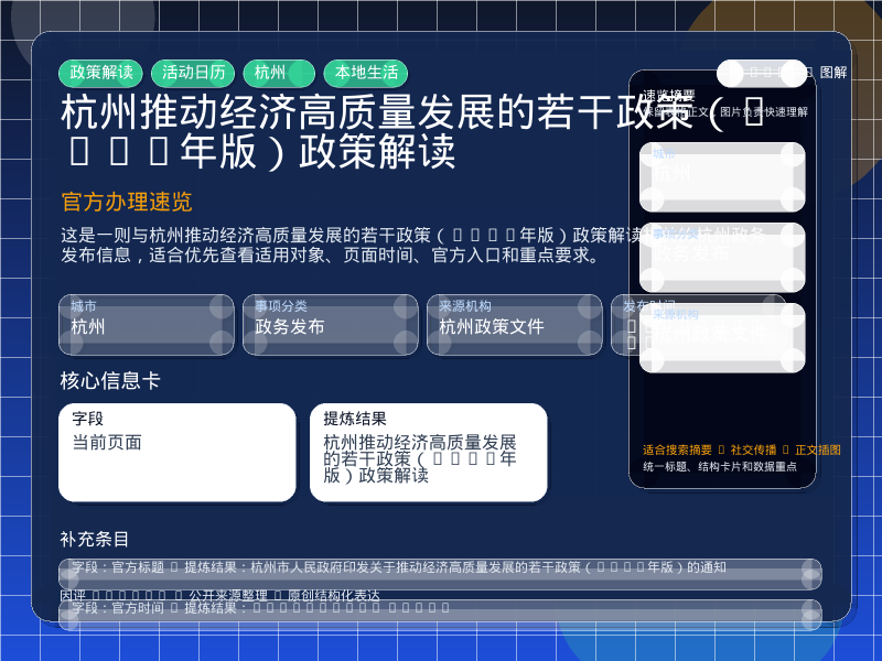 杭州政务发布整理,围绕“杭州市人民政府印发关于推动经济高质量发展的若干政策(2026年版)的通知”提炼为可检索、可阅读的原创结构化内容,优先展示时间、对象、入口和行动建议,来源:杭州政策文件。