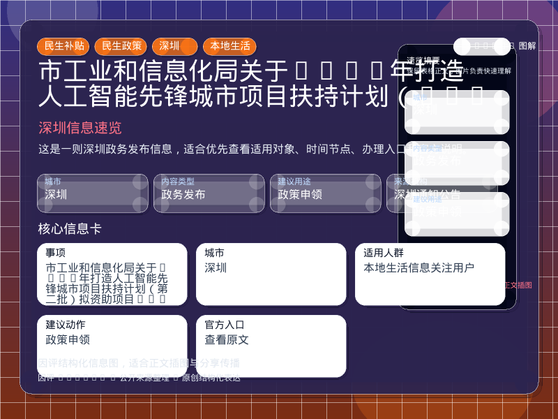 深圳本地生活线索:市工业和信息化局关于2025年打造人工智能先锋城市项目扶持计划(第二批)拟资助项目公示的...。该条目仅导入公开页面元数据,待人工审核后再生成原创内容。