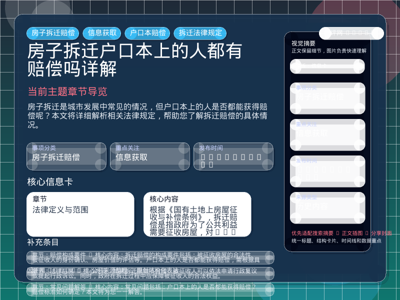 这篇内容围绕“房子拆迁户口本上的人都有赔偿吗详解”重新整理为结构化阅读页,优先提炼核心结论、章节重点和继续阅读方向。